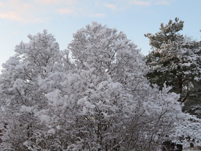 Aamuisin on ollut hienoja värejä taivaalla, kun aurinko tekee nousuaan. Lumikuorrutus kruunaa maiseman.Odottavin mielin kohti uutta vuotta.
